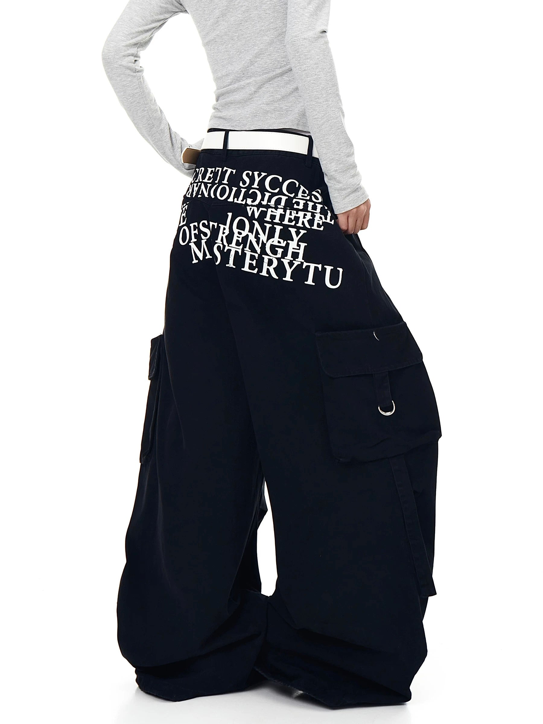 [ZPXO Select] English Letter Print Wide-Leg Pants