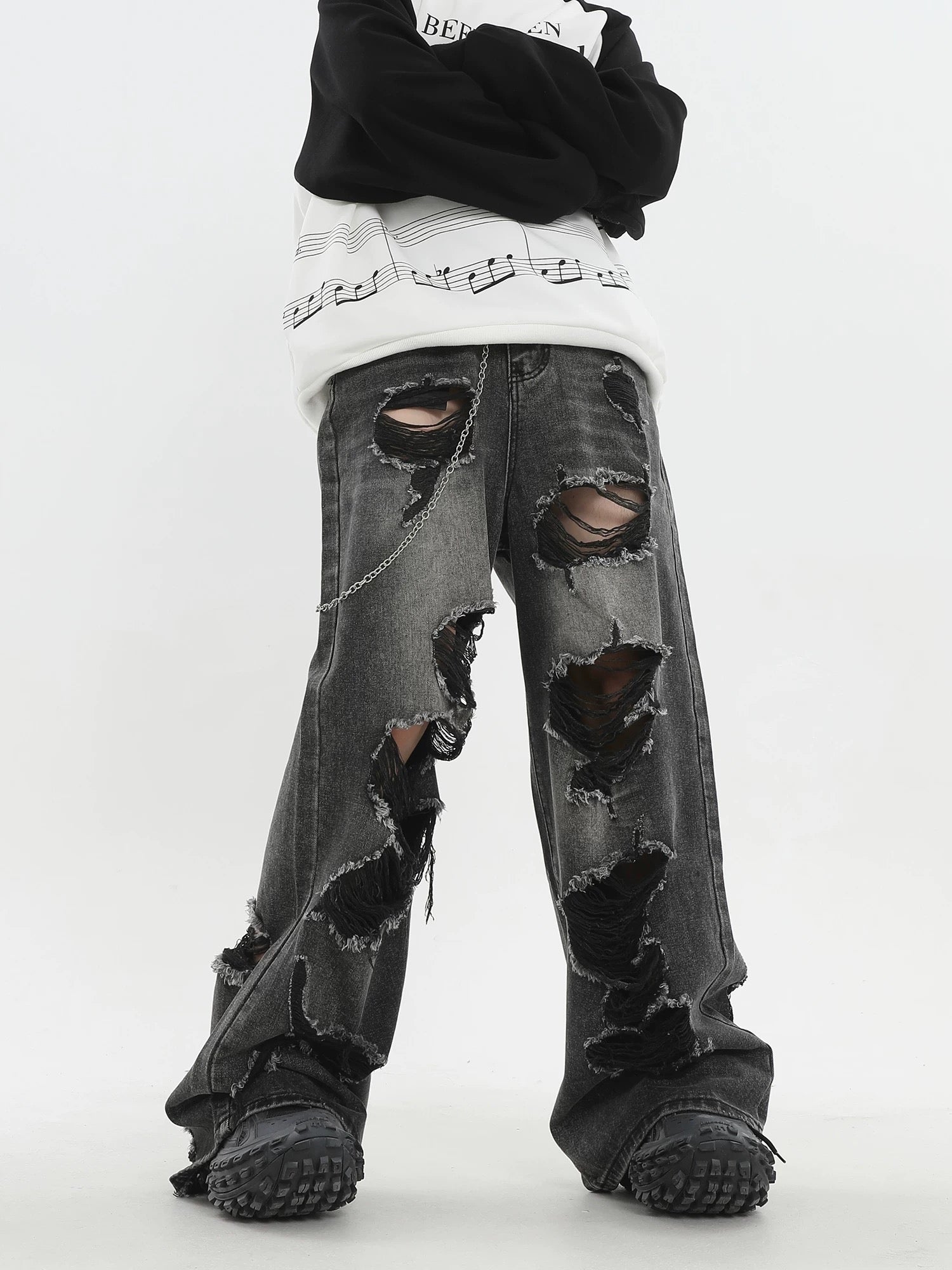 [ZPXO Select] Distressed Loose Black Jeans