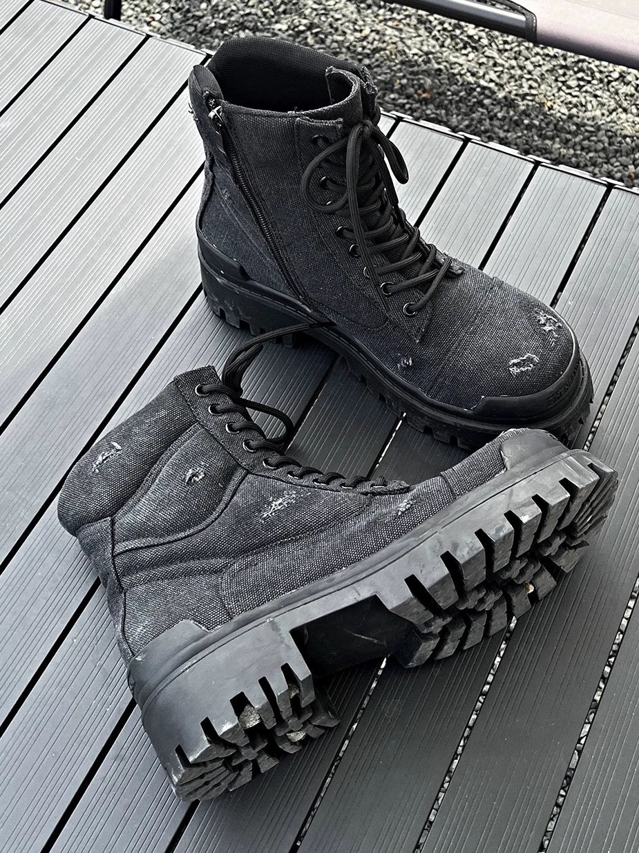 [HANQIAORIJI] Retro Hole-Worn Soled Boots